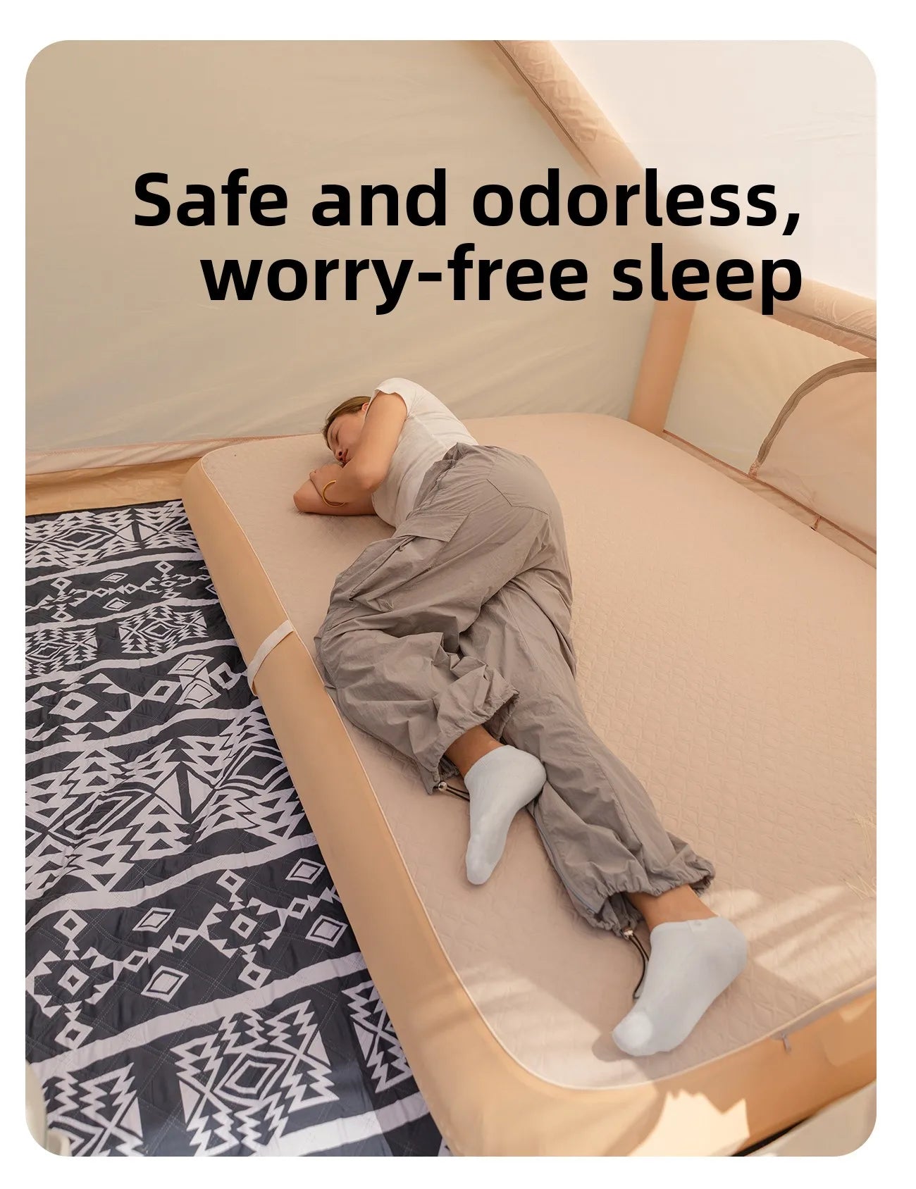 💨 Quick & Easy Setup – Features a durable PVC mesh air column structure that inflates in minutes using the included high-pressure pump, offering stability and strength.