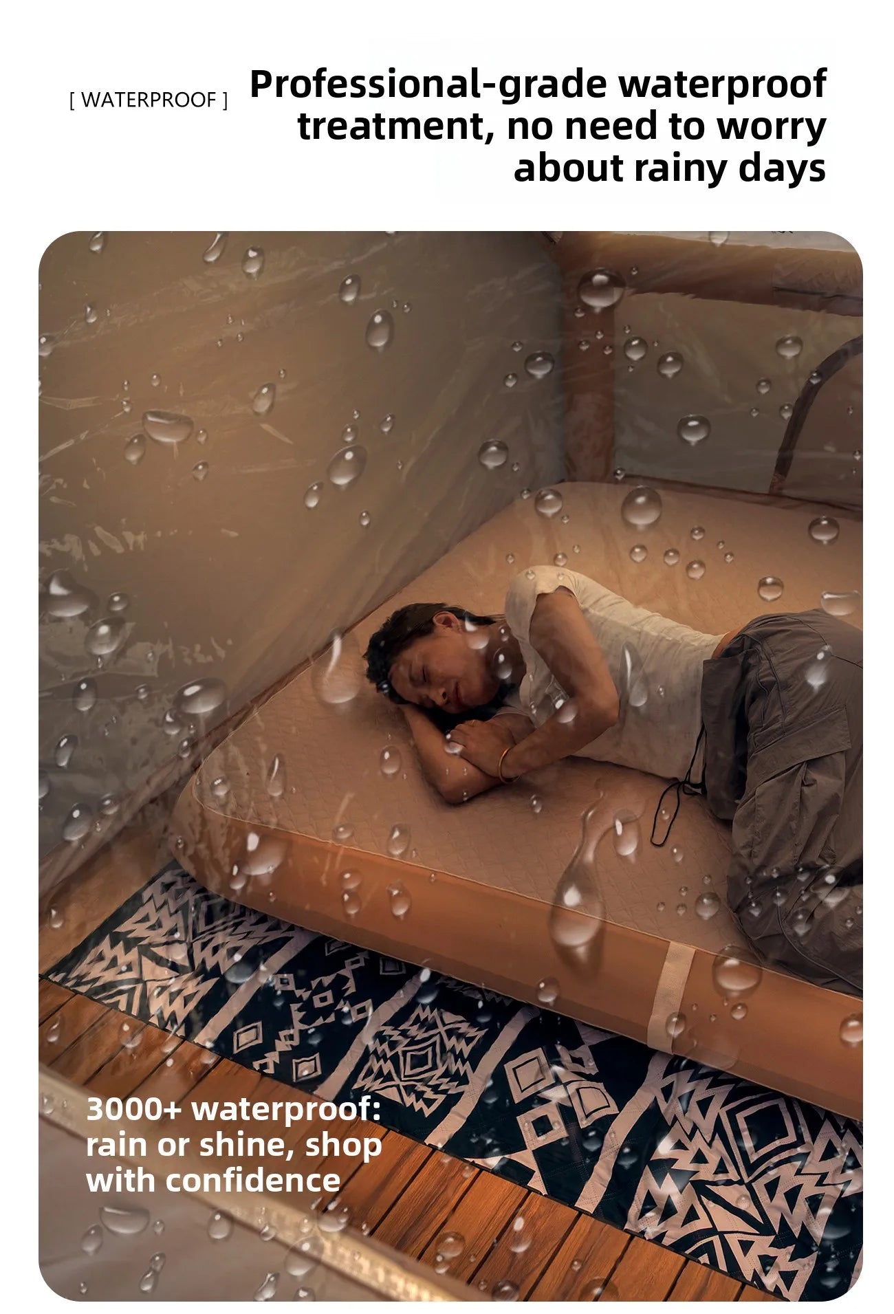 ☔ All-Weather Protection – Crafted from 150D Oxford cloth (PU3000) with wind resistance up to level 5, ensuring reliable performance in rain, dew, and light wind.